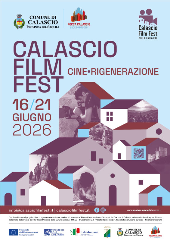 CALASCIO FILM FEST – Cine Rigenerazione si inserisce nell’ambito del progetto di rigenerazione culturale, sociale ed economica “Rocca Calascio – Luce d’Abruzzo”. Questa iniziativa del Comune di Calascio è stata selezionata come progetto pilota dalla Regione Abruzzo all’interno delle misure del PNRR gestite dal Ministero della Cultura (M1.C3 – Investimento 2.1 – “Attrattività dei borghi”), finanziate dall’Unione europea – NextGenerationEU.