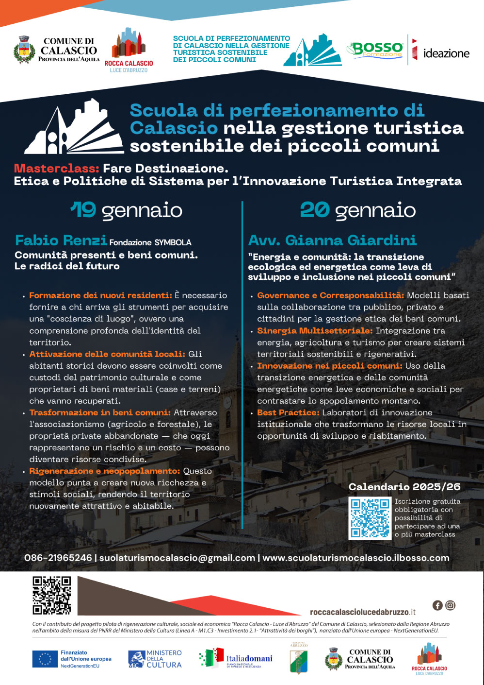 Scuola di Perfezionamento di Calascio nella gestione turistica sostenibile dei piccoli comuni – Appuntamenti di gennaio 2026